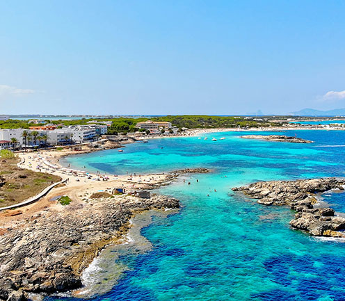 Es Pujols is considered the only tourist town and one of the most important on the island, it has a wide sandy area that runs 690 meters of coastline but at the same time it is a fairly intimate place where you can always meet the locals and see the same people. It may be an urban beach but it has the same beauty as the rest of the island's beaches, where they all share the turquoise and transparent water and white fine sand.