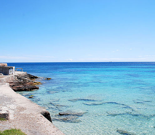 The cove of Es Cavallet is a beautiful paradise located in ‘Ses Salines Natural Park’, you can access by the road that runs through the park and around a roundabout located on the airport road, 3 kilometers ahead, just before crossing the reservoirs, there is a sharp curve. Going straight ahead, you take the path to Es Cavallet beach. The shore is about 700 meters ahead.